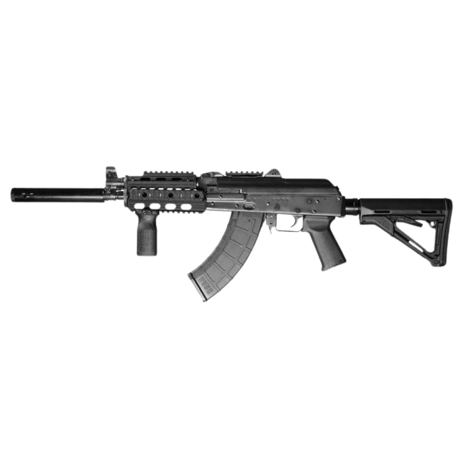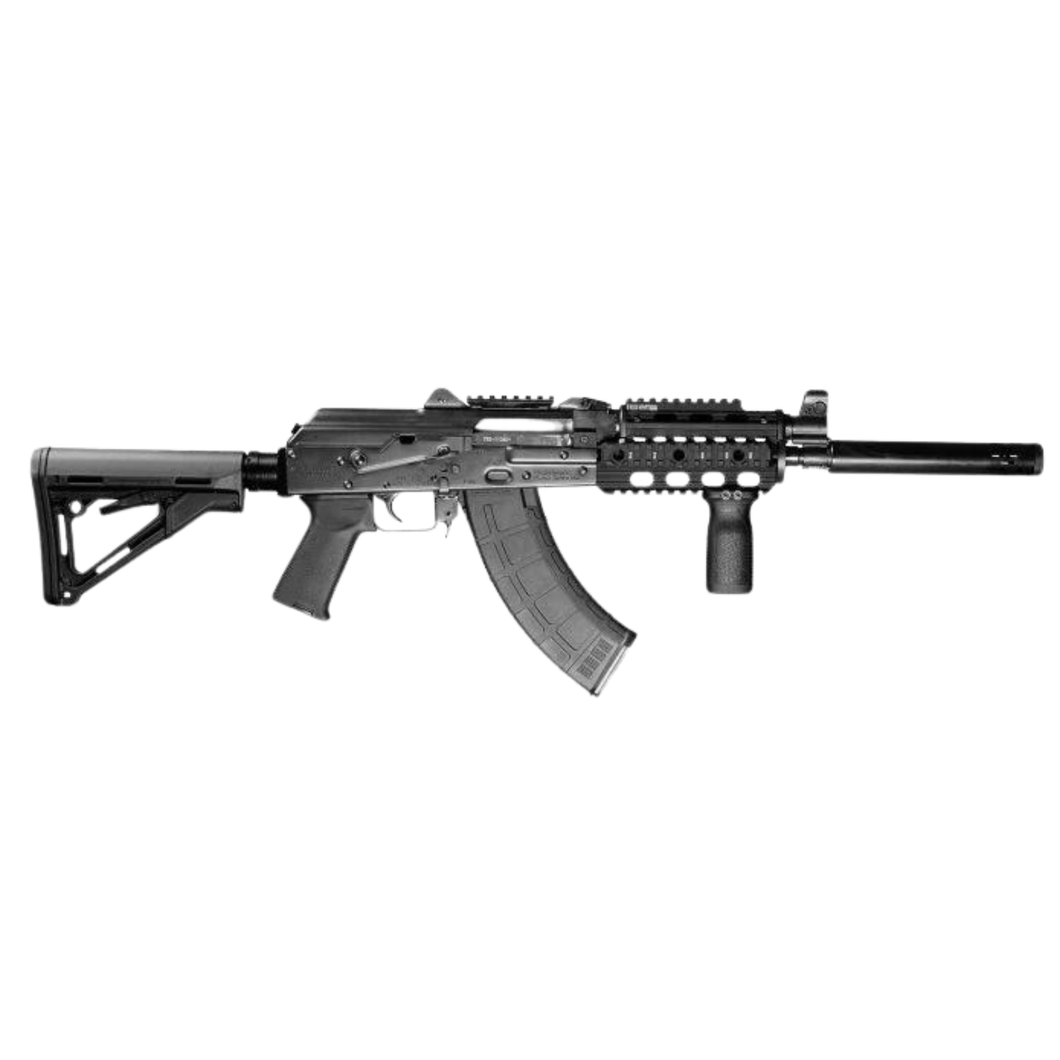 ZPAP92 AK Rifle 7.62 x 39 mm with night brake , quad rail ,top rail, buffer tube adaptor foregrip, magpul CTR stock, extended barrel BULDGED TRUNNION, 1.5MM RECEIVER, CHROME LINED BARREL