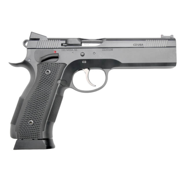 With a deep beavertail, undercut trigger guard, raised 25 LPI checkering and an internal magwell, it combines classic CZ 75 ergonomics with purpose-driven features ideal for competition.