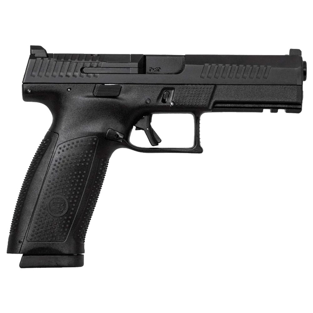 The CZ P-10 F is a full-size, semi-automatic pistol chambered in 9mm, designed for versatility and reliability. It features a 4.5-inch barrel that provides precise accuracy and control, making it an excellent choice for competitive shooting, home defense, and range practice. This pistol comes with a generous 19-round capacity, allowing for extended shooting sessions without frequent reloading.