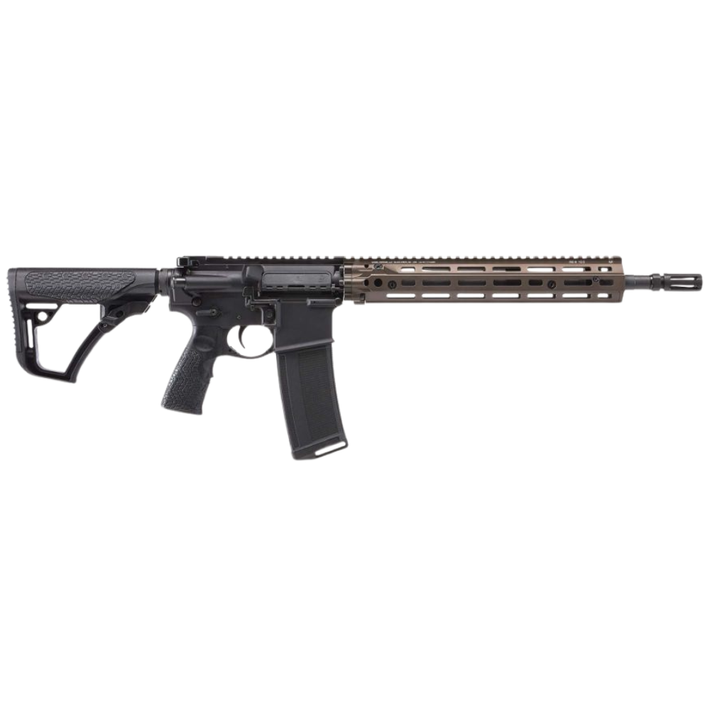 The M4A1 RIII AR15 style firearm features a fully ambidextrous lower that allows both left- and right-handed shooters to operate the bolt catch, safety selector, and magazine release without having to move or remove their dominant hand from the rifle’s grip. Its GRIP-N-RIP Charging Handle is ambidextrous as well. We’ve taken the RIS II picatinny quad rail used on our M4A1 original and replaced it with a 12.5 inch RIS III rail featuring M-LOK attachment for lighter weight. The M4A1 RIII is built around a 14.5 inch Cold Hammer Forged Government Profile barrel with a permanently attached Daniel Defense Flash Suppressor. This rifle also comes with the ergonomic Daniel Defense Buttstock and Pistol Grip.