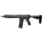 The MK18 AR15 style Pistol is inspired by the original MK18, which has been extremely popular within the Law Enforcement and Special Operations communities. This firearm is classified as a Pistol and not a Short Barreled Rifle (NFA regulated items require ATF approval and a tax stamp). The MK18 Pistol features the picatinny quad rail Daniel Defense currently provides to USSOCOM and a 10.3 inch Cold Hammer Forged Barrel, the same length commonly used for CQB operations. The MK18 RISII features our patented 6-bolt Bolt-Up System and has been rigorously tested prior to fielding by USSOCOM. This pistol comes equipped with the SB Tactical SBA3 Pistol Stabilizing Brace with 5 positions of adjustability and integral, ambidextrous QD swivel attachment point. The independently ambi GRIP-N-RIP Charging Handle accommodates left- and right-handed shooters. This pistol comes equipped with the ergonomic Daniel Defense Pistol Grip with an integral trigger guard and soft touch overmolding.